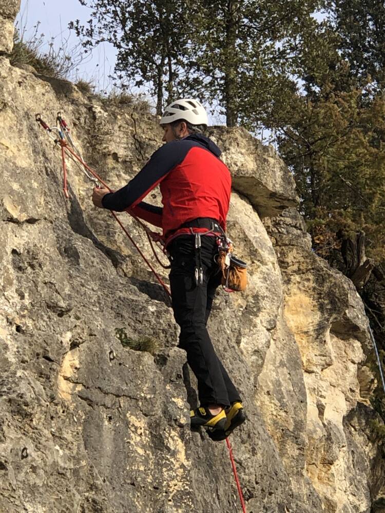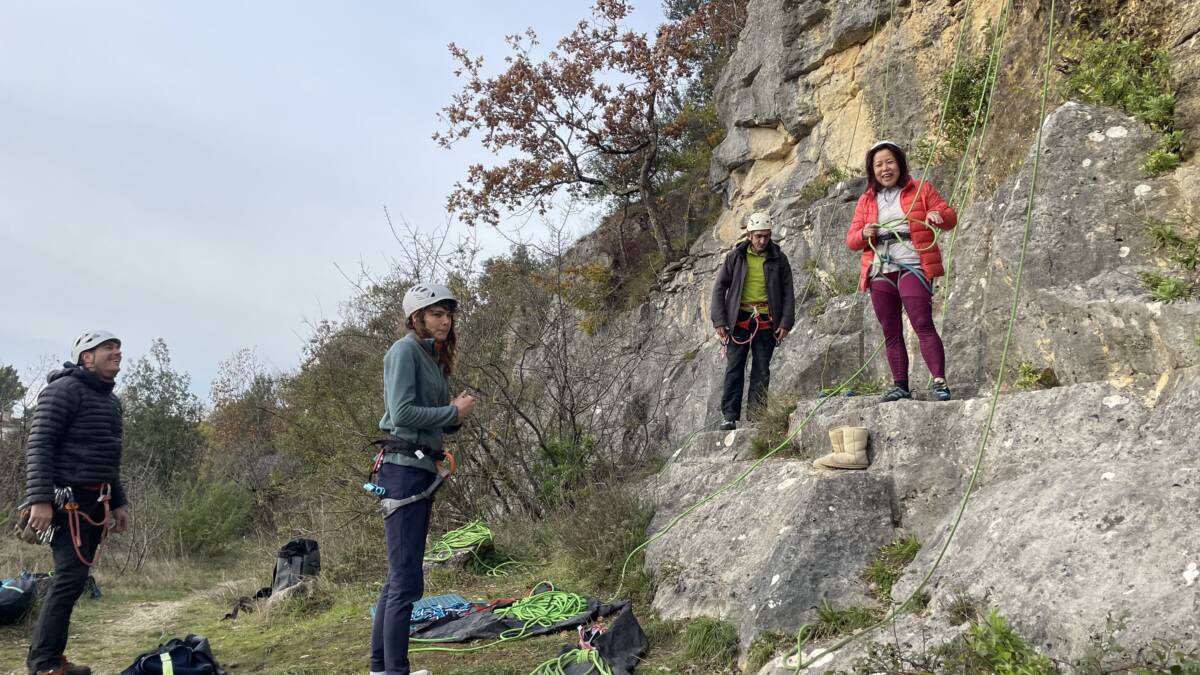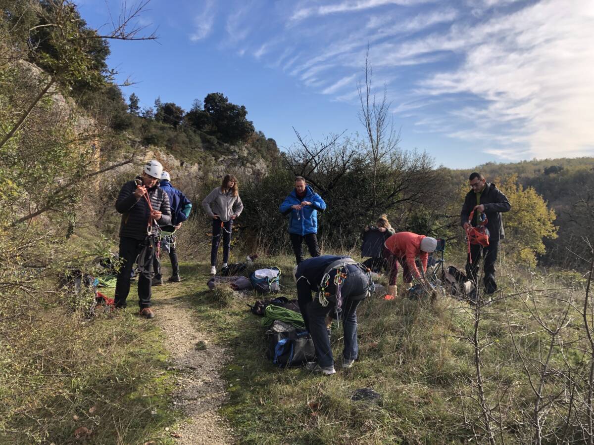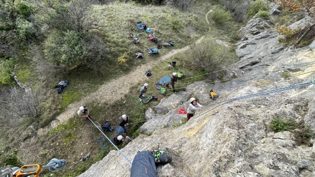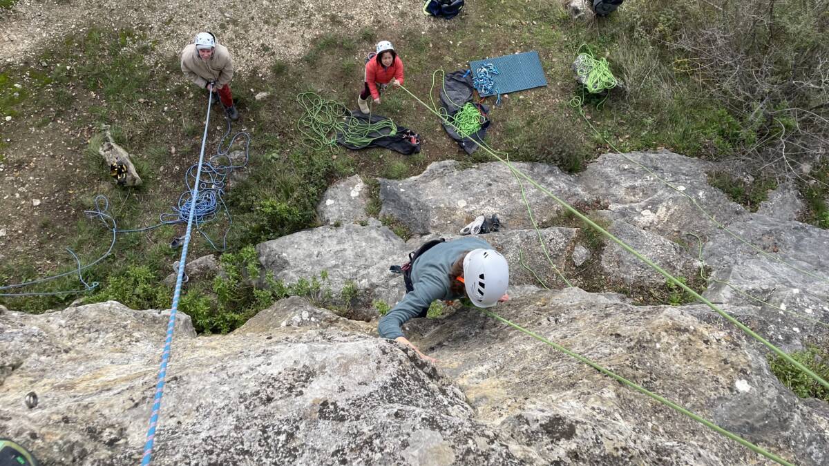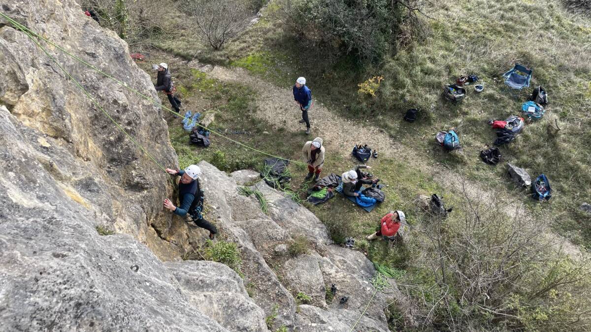 Découverte de la falaise pour certains et révision des manips haut de voie, pour les autres.